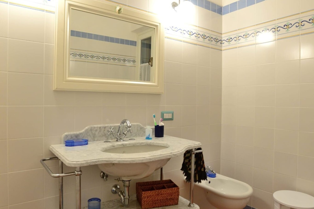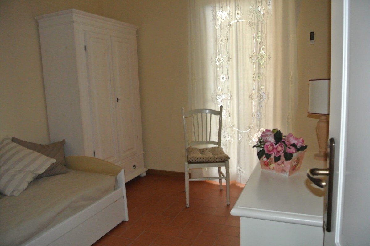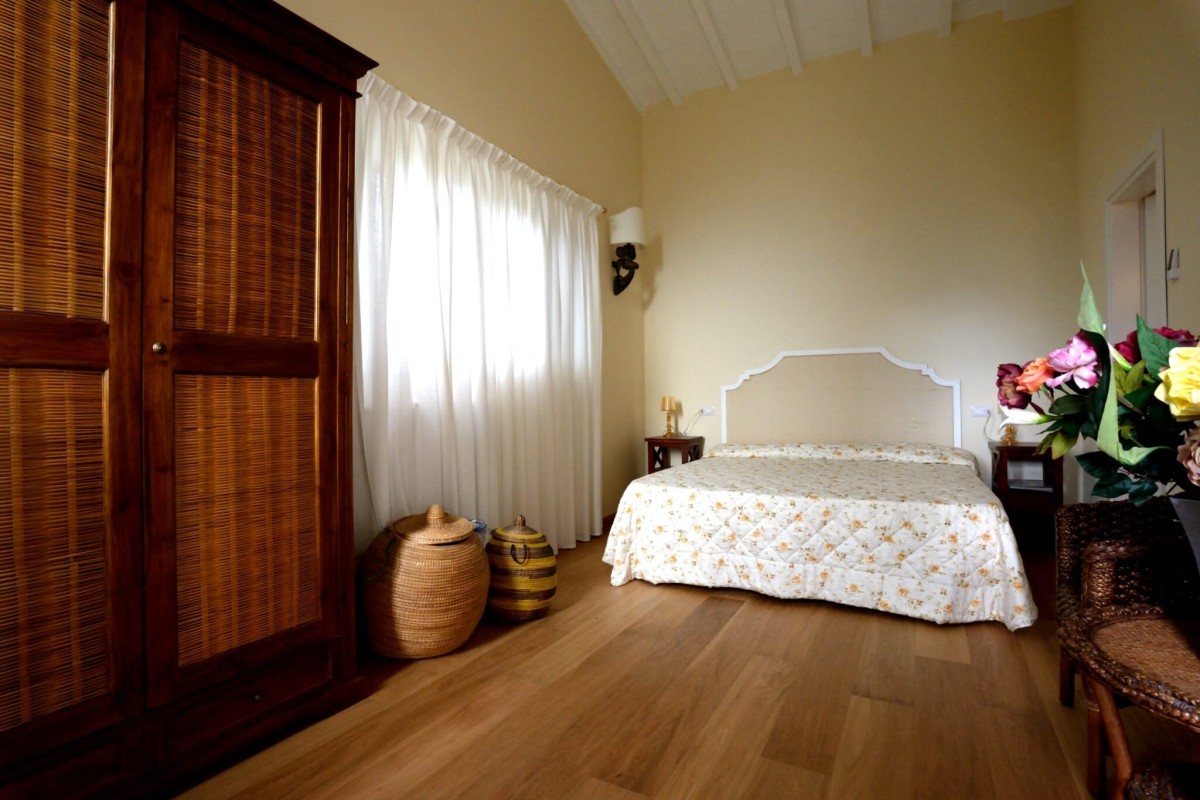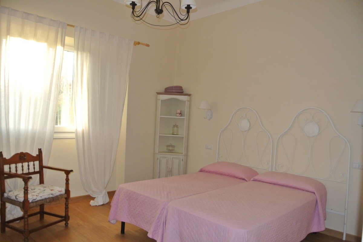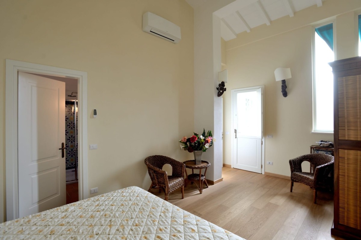 una camera matrimoniale con a/c e bagno con doccia. All'esterno bella