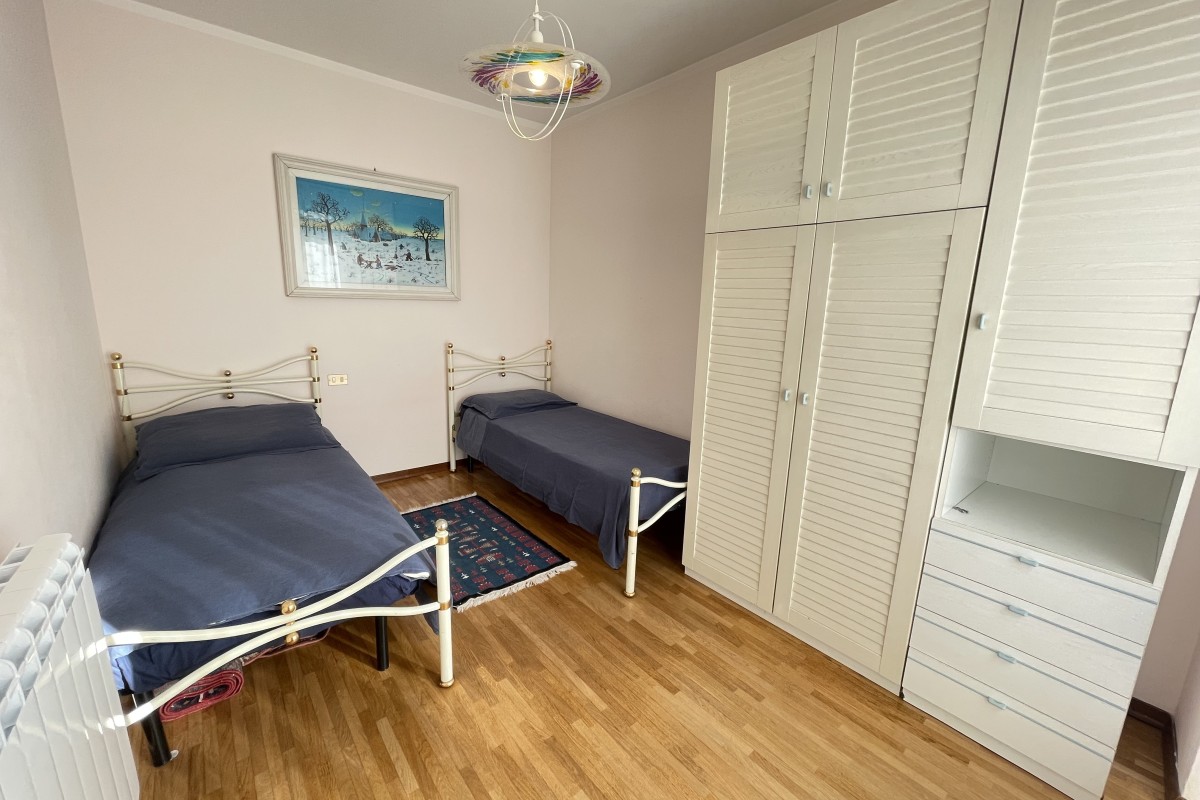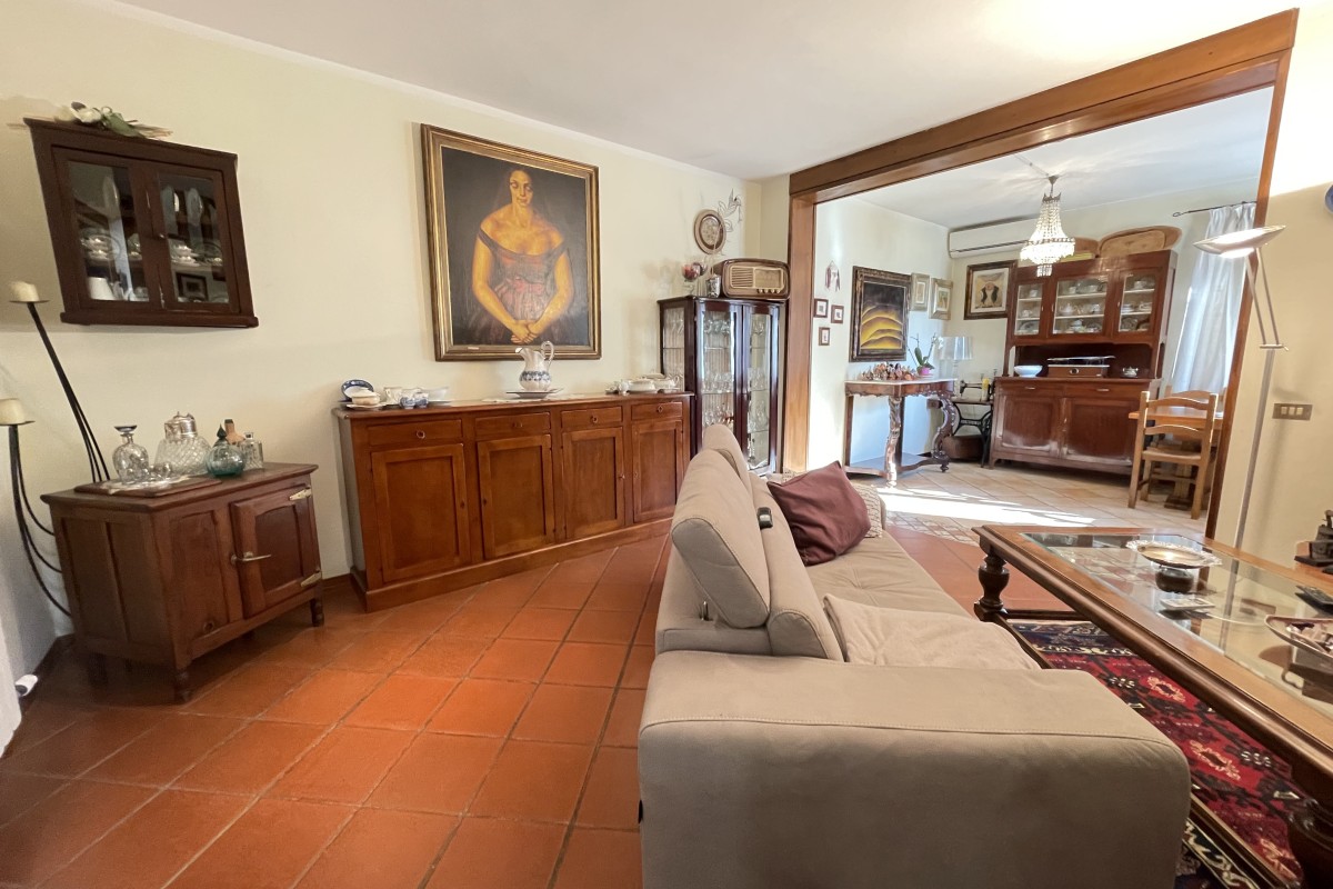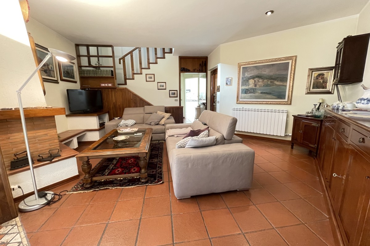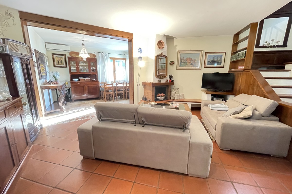 La casa dispone di due ingressi, quello principale dal giardino in comune e quello carrabile, completamente indipendente e con possibilità di parcheggiare fino a tre auto, corredato anche questo da giardino e veranda attrezzata.