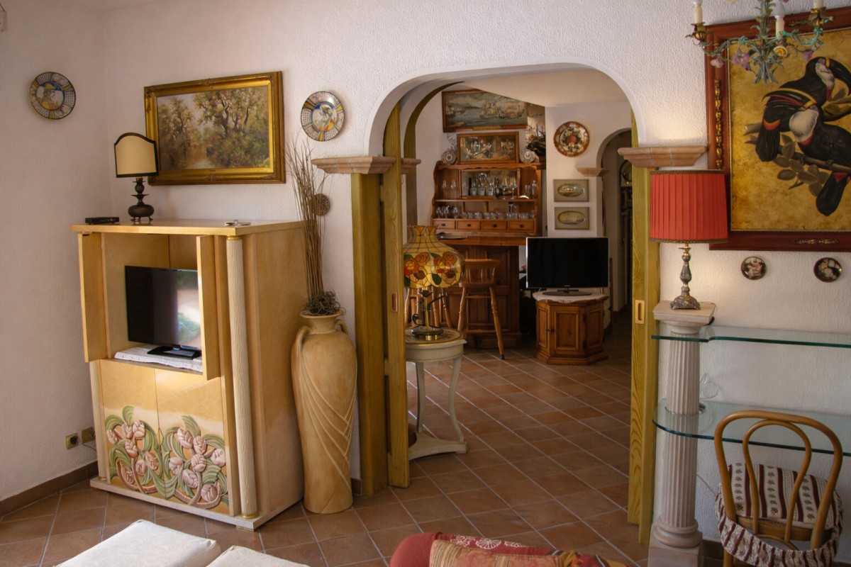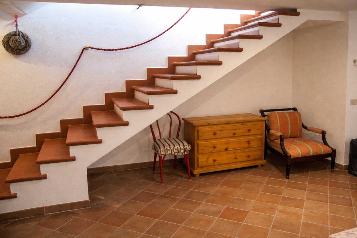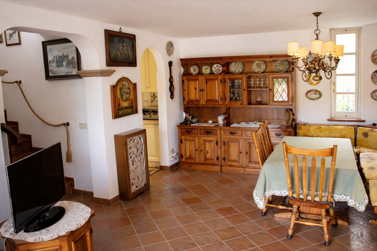 La villa si sviluppa su più livelli e offre ambienti ampi, luminosi e accoglienti, ideali per una vacanza all’insegna del comfort. Al piano terra si apre un elegante soggiorno, perfetto per rilassarsi dopo una giornata al mare, affiancato da una zona pranzo e da una cucina completamente attrezzata. Completano il piano un bagno di servizio e una camera matrimoniale con bagno privato, ideale anche per garantire maggiore comodità agli ospiti.
