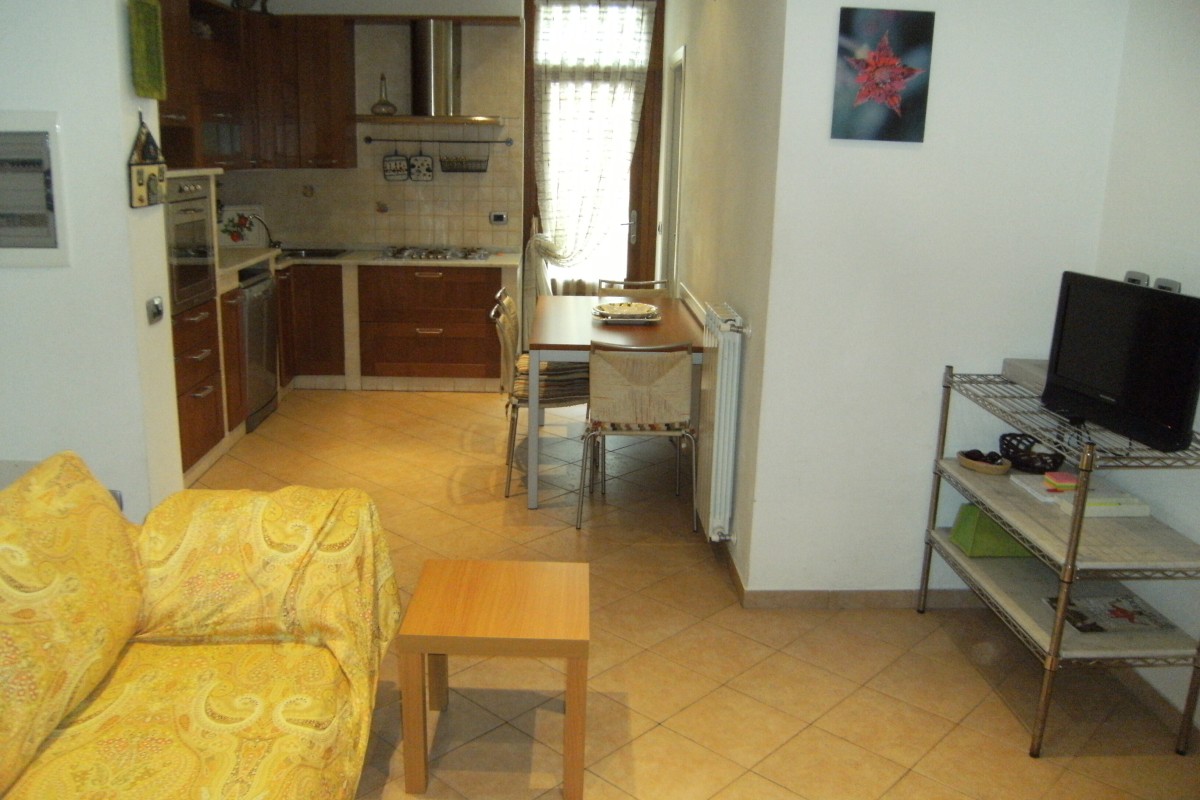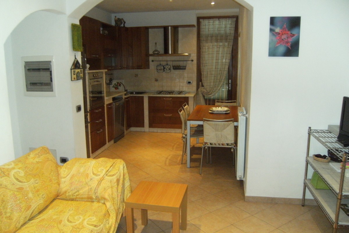 terra luminoso soggiorno, sala da pranzo e cucina abitabile, un bagno