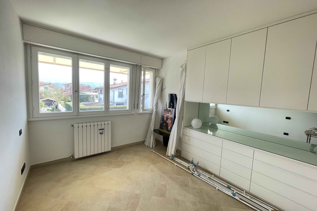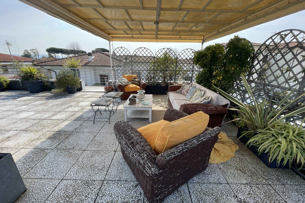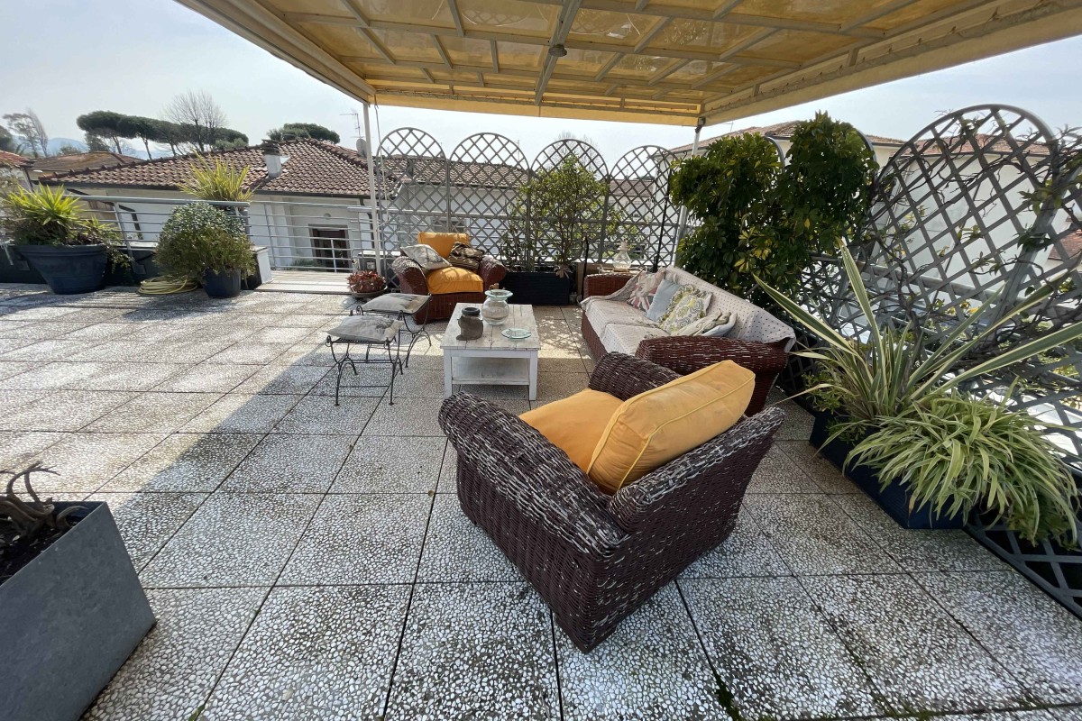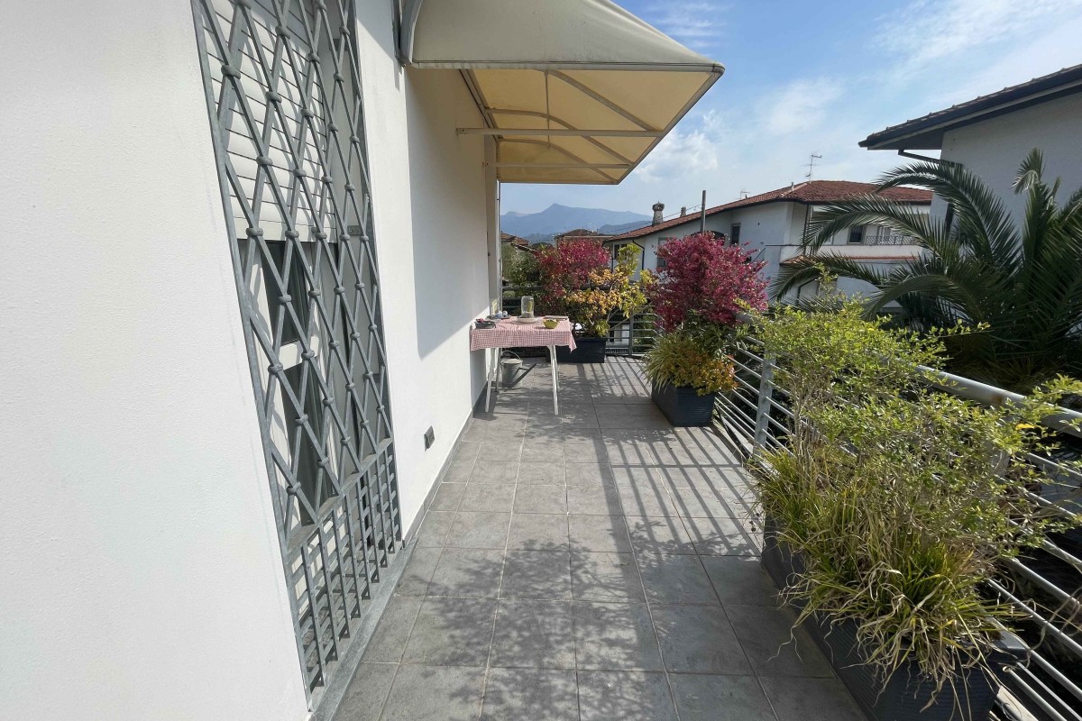 A Lido di Camaiore, in contesto residenziale tranquillo e ben servito, a soli 850 metri dal mare, proponiamo in vendita appartamento in posizione attico, posto al primo piano, corredato da giardino esclusivo e posto auto indipendente.  L’immobile si presenta luminoso e ben distribuito, ed è composto da: soggiorno-pranzo con cucina; due camere da letto; due bagni; ampia terrazza vivibile al piano con  comodo pergolato ideale per pranzi e momenti di relax all’aperto. Completa la proprietà un piano superattico con splendida vista panoramica sulle Alpi Apuane, perfetto come zona relax, solarium o spazio multifunzionale.   Soluzione ideale sia come abitazione principale che come casa vacanze.