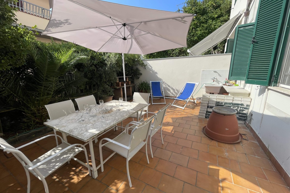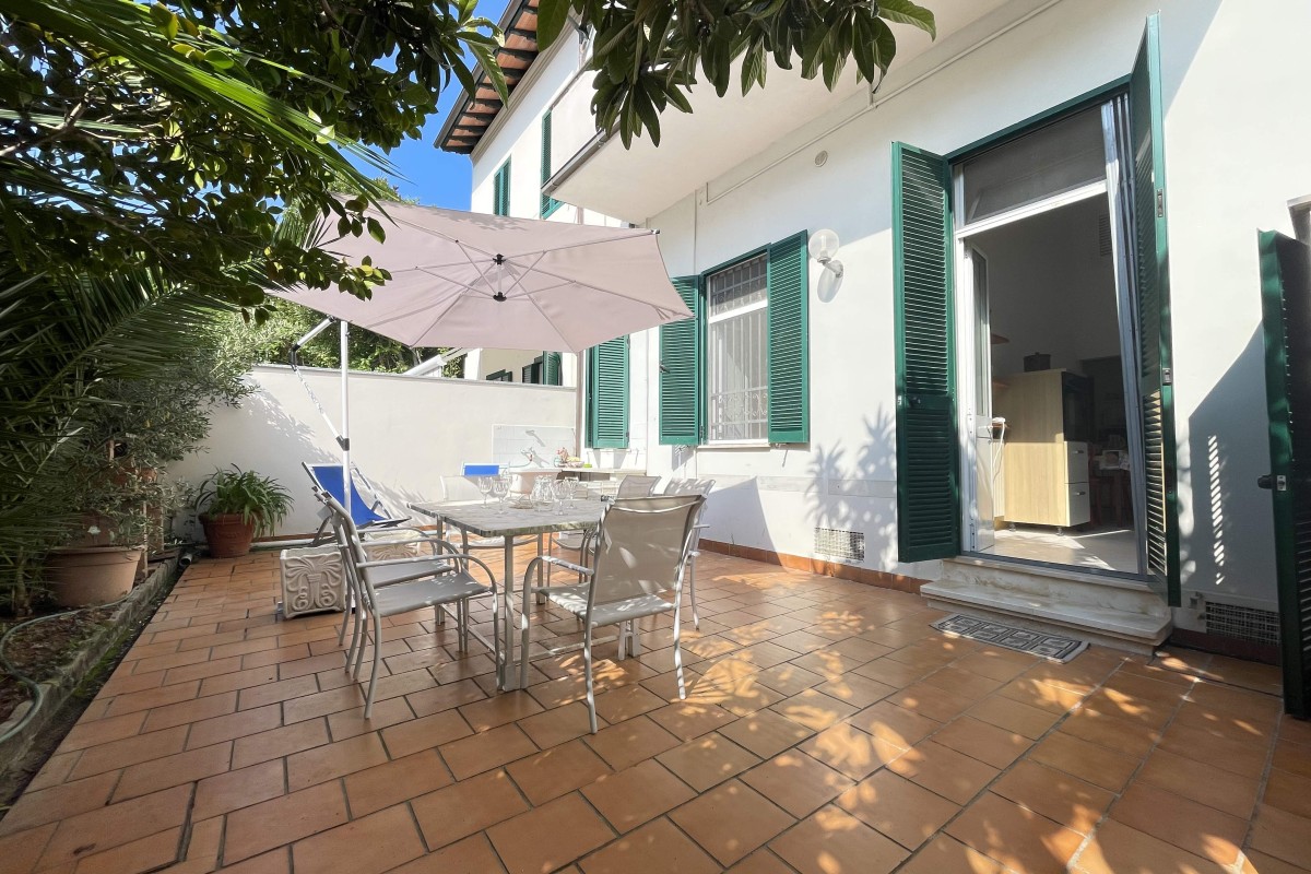 Rif.1600 - Nostra esculiva -marina di pietrasanta-tonfano- appartamento a 200 metri dal mare-l'appartamento, ristrutturato di recente, si trova in una delle zone più riservate e tranquille ed ha affacci aperti e luminosi, ha uno spazio esterno di proprietà con una pompeiana dove è possibile pranzare e ce. . .