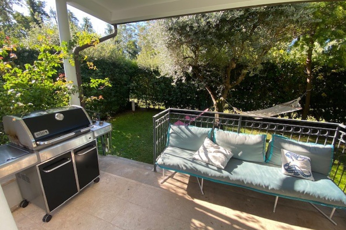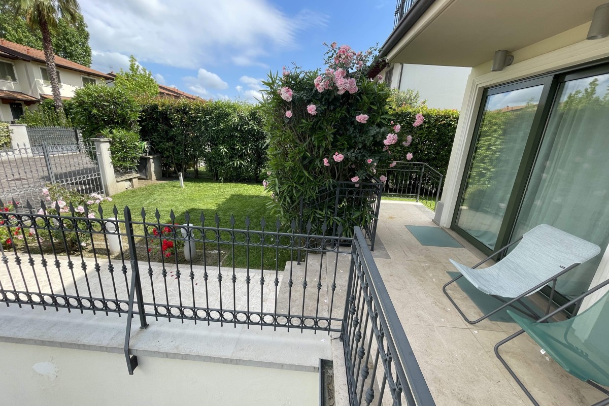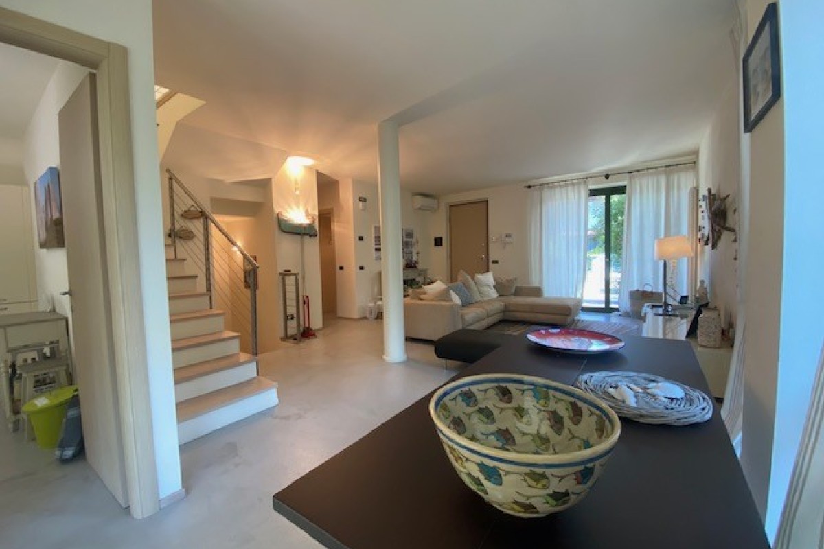 In vendita in esclusiva – Porzione di bifamiliare situata in una bella e tranquilla zona residenziale, all’interno di un raffinato complesso con accesso privato, a soli 900 metri dal mare e a pochi chilometri dal centro storico.