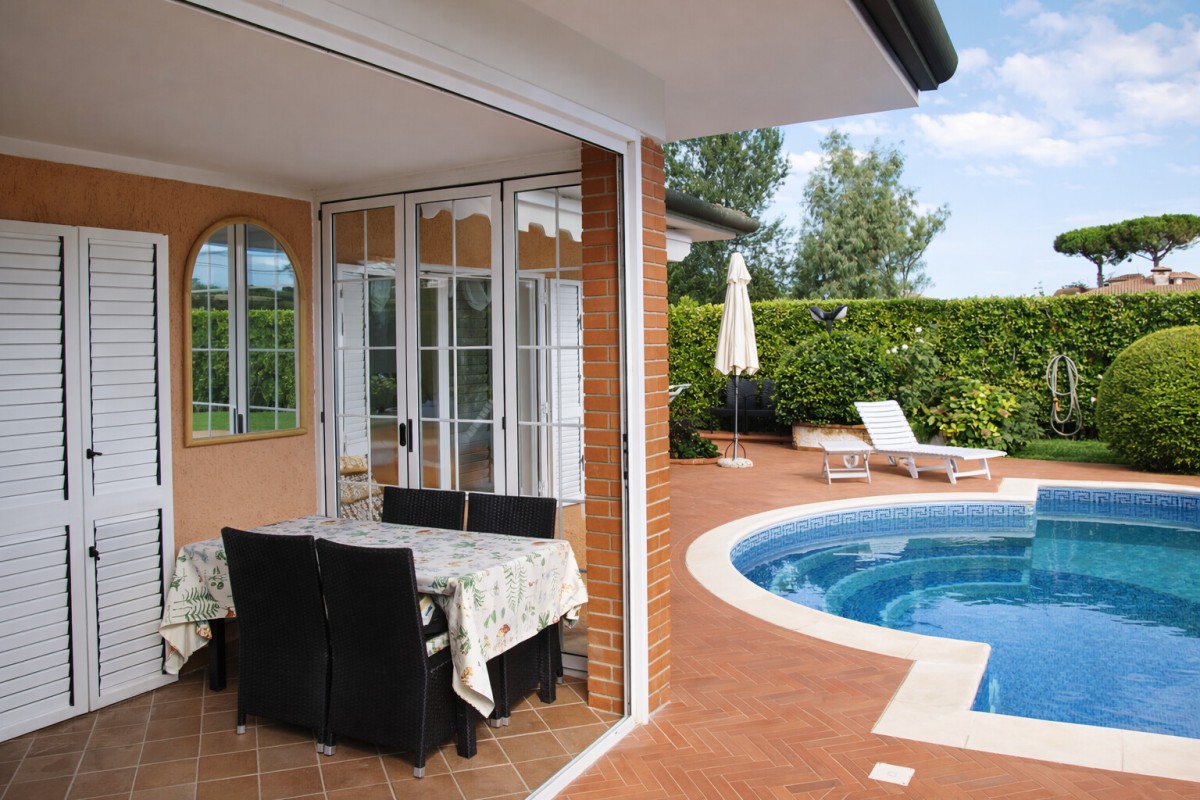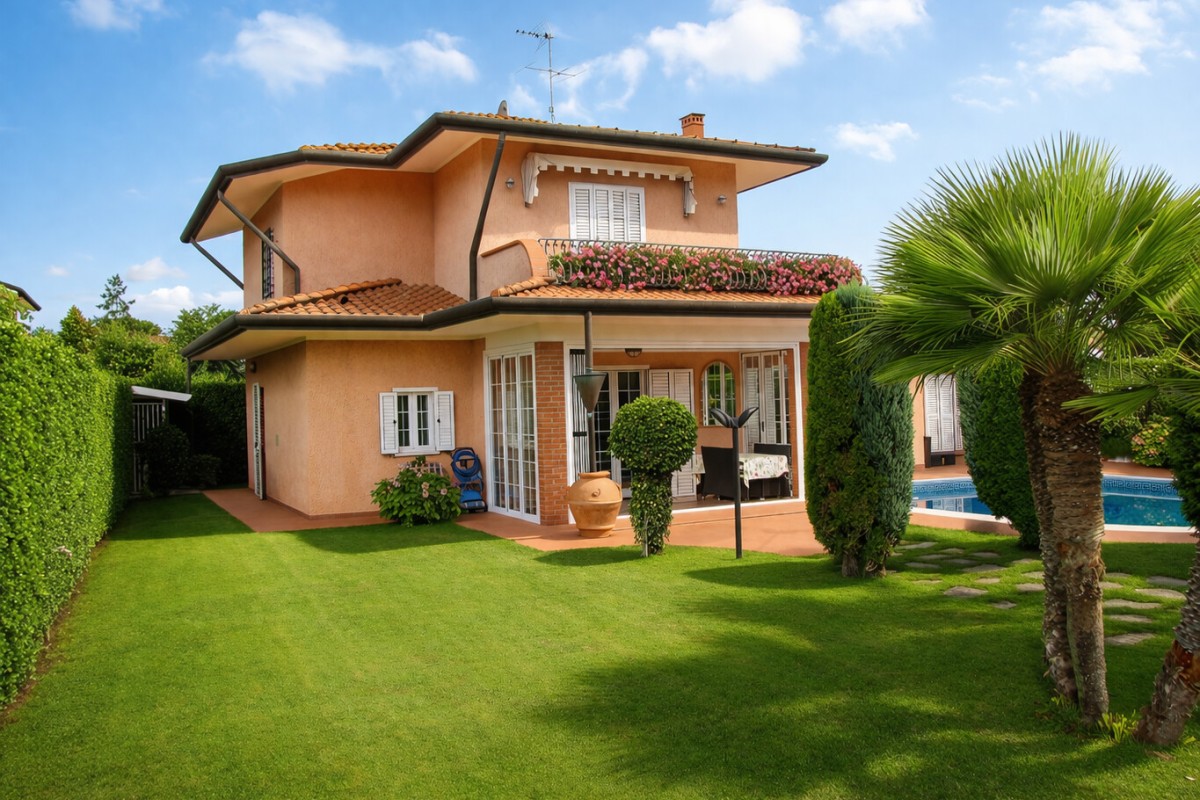 In posizione riservata e tranquilla, a circa 1.500 metri dal mare, proponiamo in vendita una raffinata villa singola, completamente libera su quattro lati e impreziosita da una splendida piscina privata, perfettamente inserita nel contesto verde che circonda la proprietà.