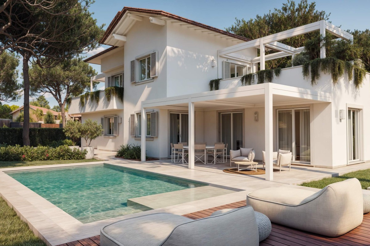 eventualmente attrezzabili con pergole, vasche idromassaggio e arredi esterni.