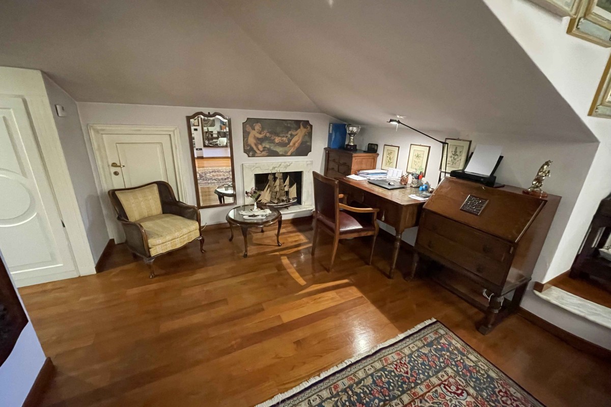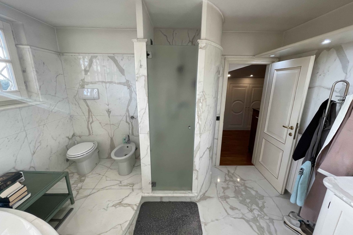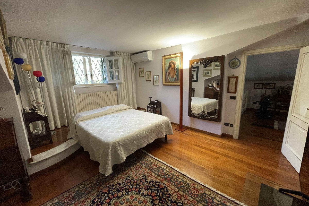 Il piano mansardato è dedicato alla zona notte principale, con una grande camera padronale, stanza armadi e bagno in marmo con vasca idromassaggio. Il piano seminterrato comprende una taverna con camino, una seconda cucina, una camera, un bagno, cantina, lavanderia, palestra con sauna, e comodo accesso indipendente dall’esterno.