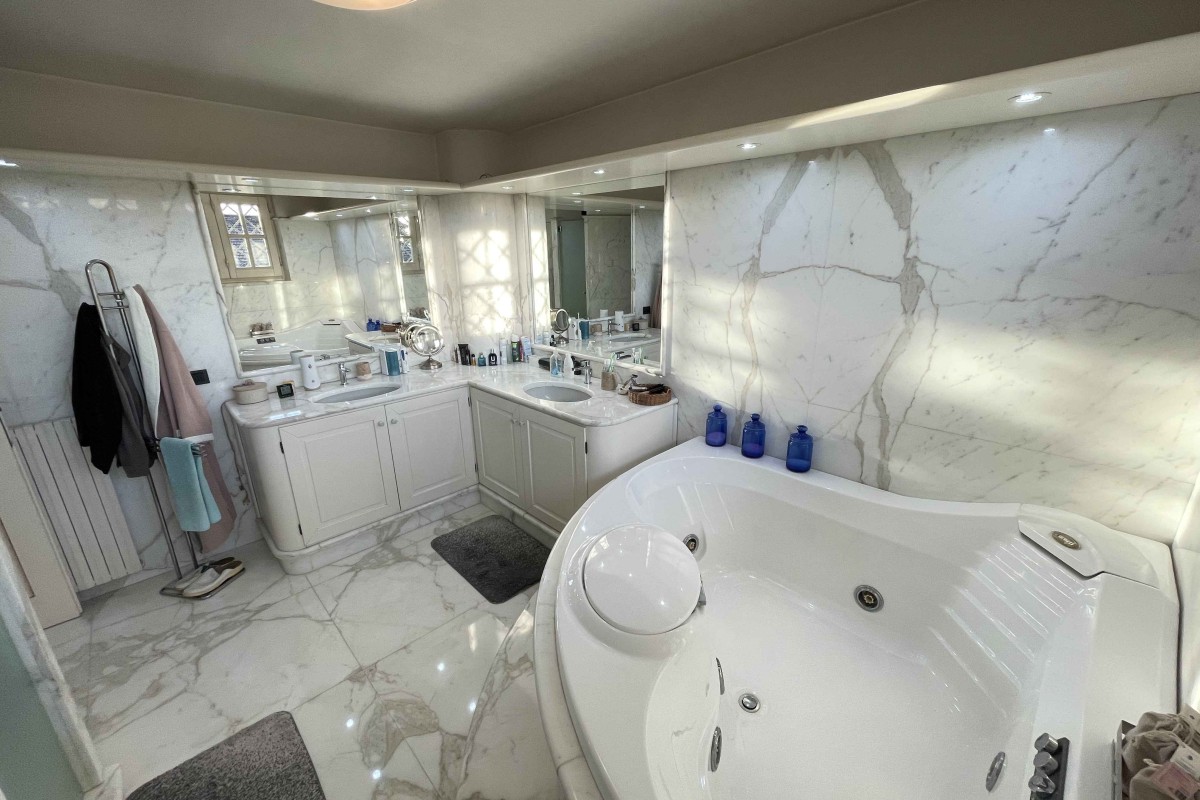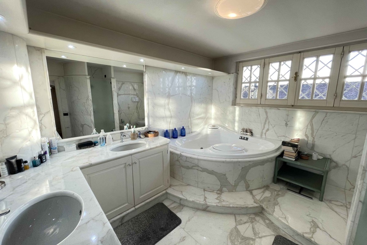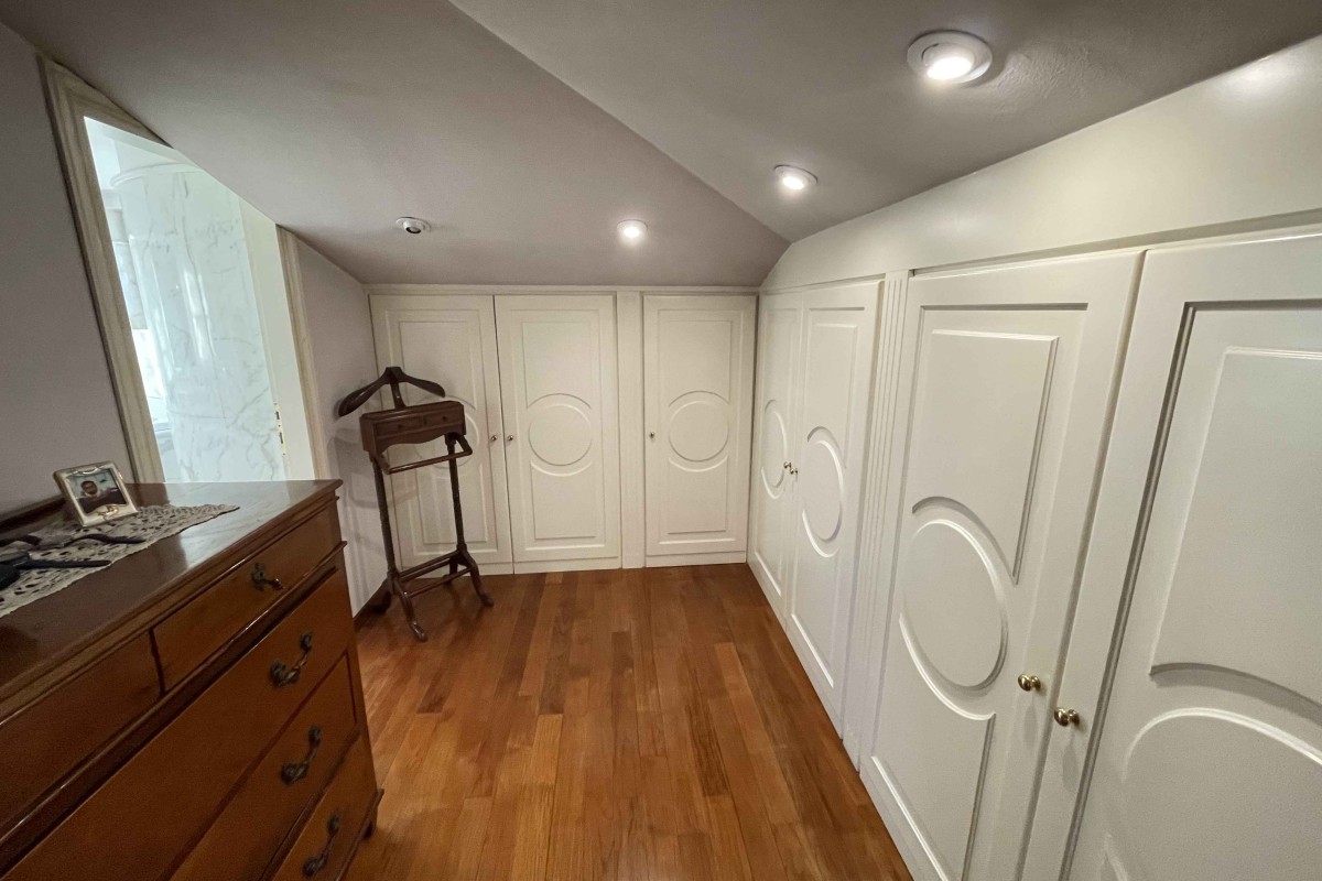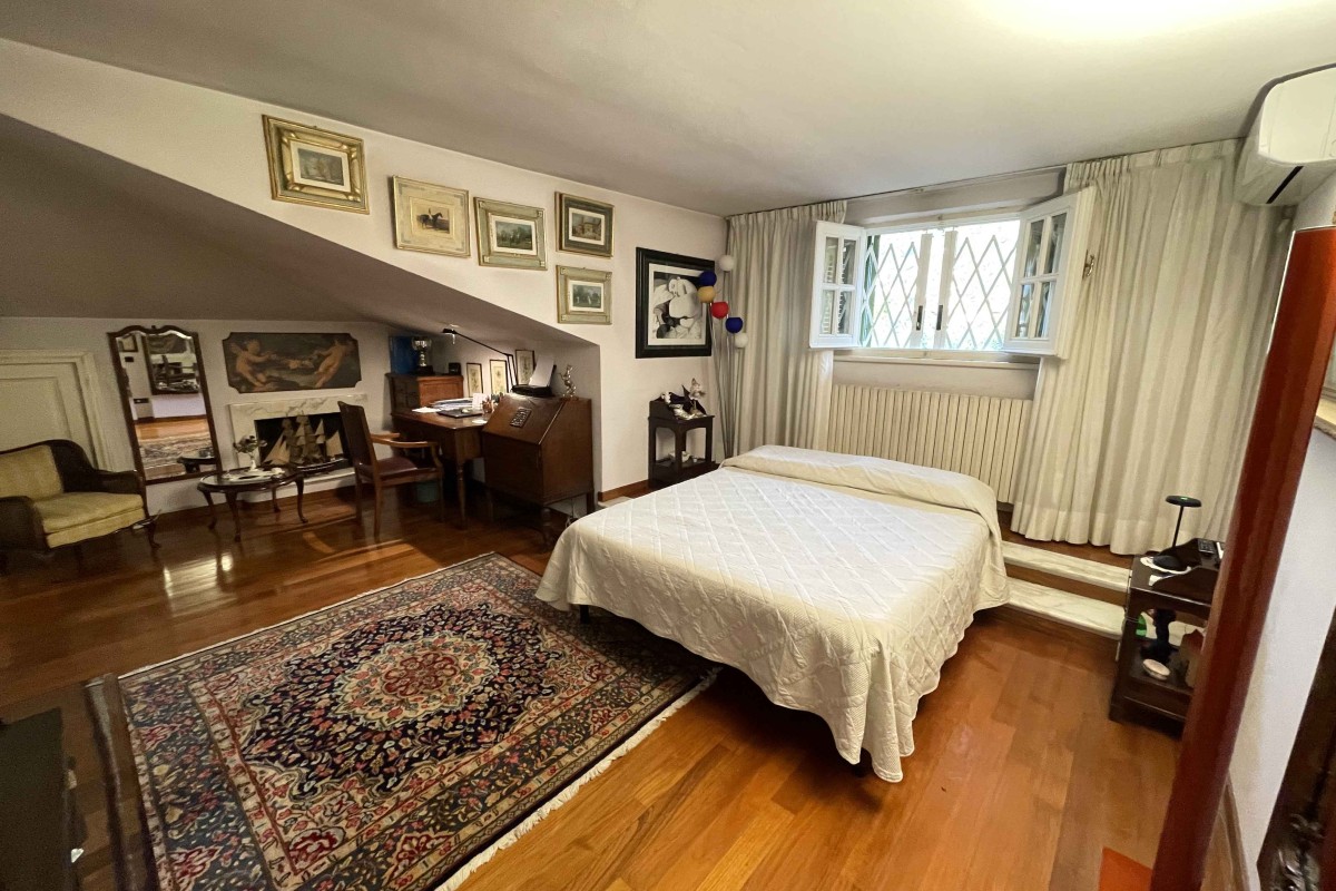 Il piano mansardato è dedicato alla zona notte principale, con una grande camera padronale, stanza armadi e bagno in marmo con vasca idromassaggio. Il piano seminterrato comprende una taverna con camino, una seconda cucina, una camera, un bagno, cantina, lavanderia, palestra con sauna, e comodo accesso indipendente dall’esterno.