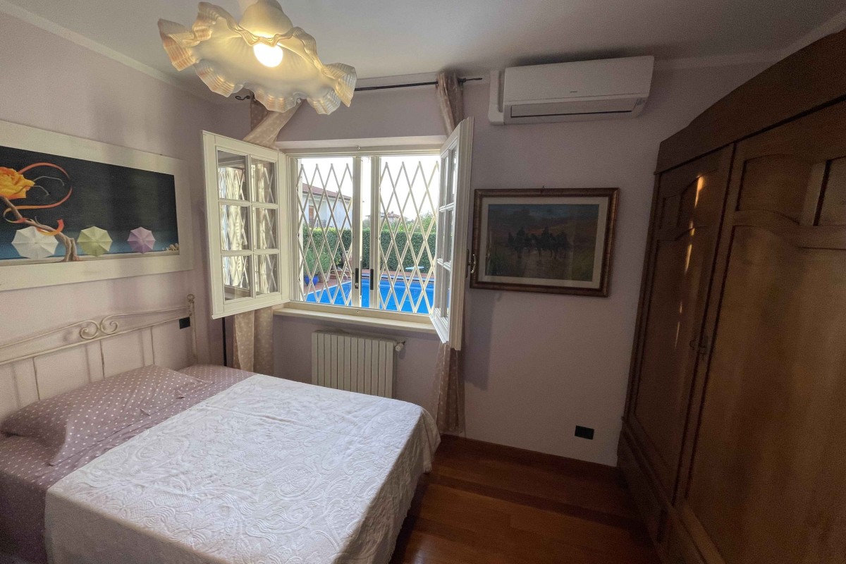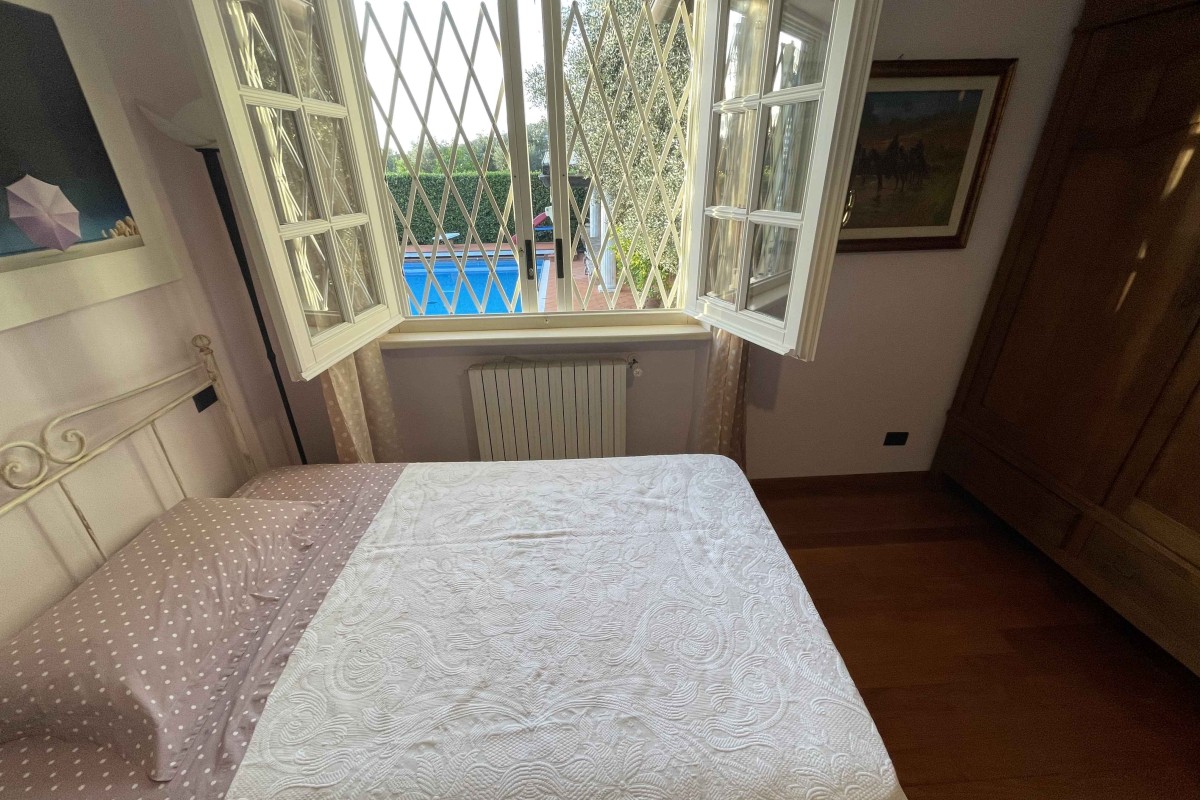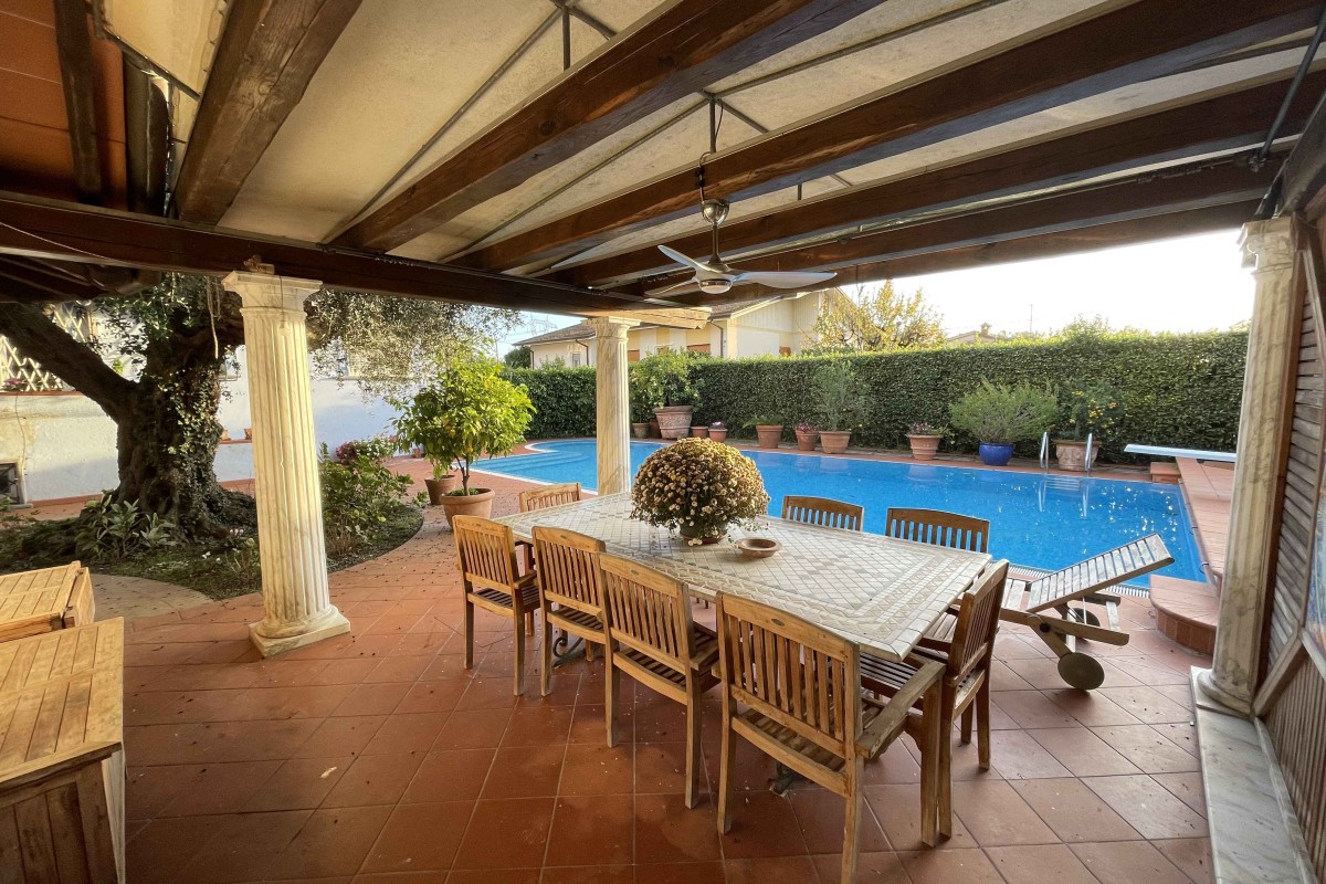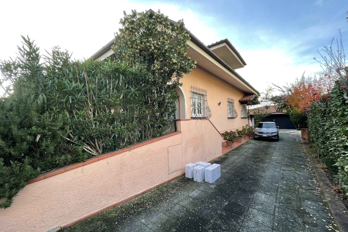 In  zona residenziale tranquilla e ben servita, a soli 1 km da Querceta e a pochi minuti da Forte dei Marmi, è disponibile questa villa singola con piscina, una proprietà elegante e completa di ogni comfort. La casa è inserita in un lotto di 893 mq, con un ampio giardino curato che circonda l’abitazione e valorizza la zona piscina.